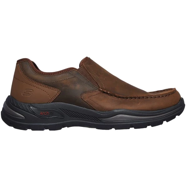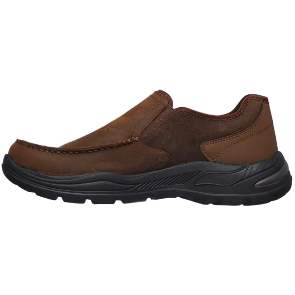 Your feet will thank you for the supportive comfort of Skechers Arch Fit Motley – Hust. Smooth oiled matte-finish leather and smooth synthetic upper in a slip-on casual moc toe loafer with supportive Arch Fit and Air-Cooled Memory Foam insole.