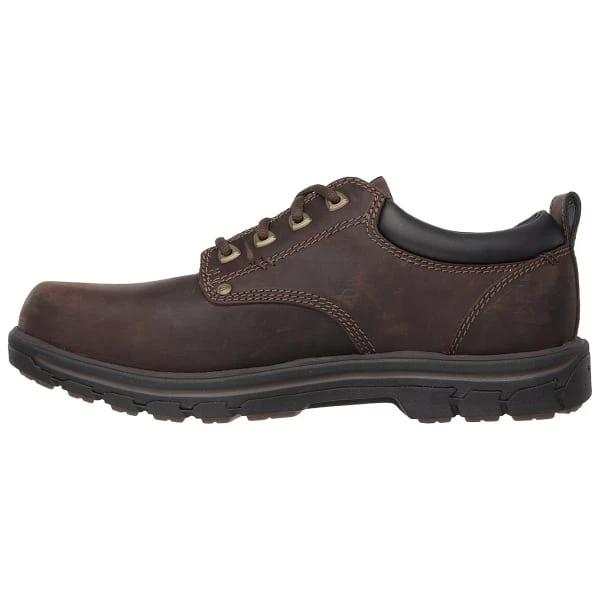 The Skechers Rilar is a casual men’s lace-up shoe with a padded collar and tongue, and gel-infused Memory Foam insoles to give your feet the all-day cushioned comfort they deserve. Reinforced stitched seams and metal stud accents on the side panels provide reinforced strength and the flexible rubber outsole offers reliable traction. It comes in a wide, relaxed fit and classic oxford style for timeless comfort you can count on.