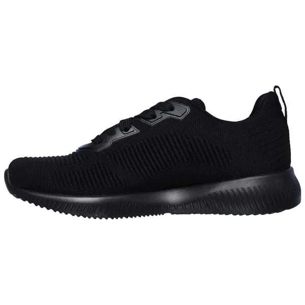 Always back up your claims in sporty style and total comfort with the SKECHERS Bobs Sport Squad – Tough Talk shoe. Soft woven knit fabric upper in a lace up fashion sneaker with synthetic overlays and Memory Foam insole.