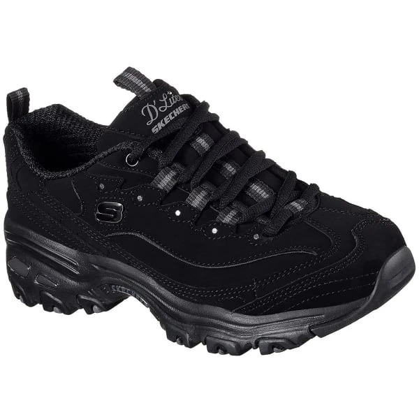 Keep that classic comfortable style and comfort going with the SKECHERS D’Lites – Play On shoe. Smooth trubuck leather and synthetic upper in a lace up sporty casual sneaker with stitching and overlay accents. Air Cooled Memory Foam insole.