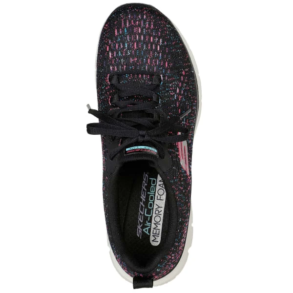 Keep your athletic options flexible and comfortable with the Skechers Flex Appeal 4.0 – Vivid Spirit shoe. This lace-up sneaker features a breathable engineered mesh upper with a cushioned Air-Cooled Memory Foam insole.
