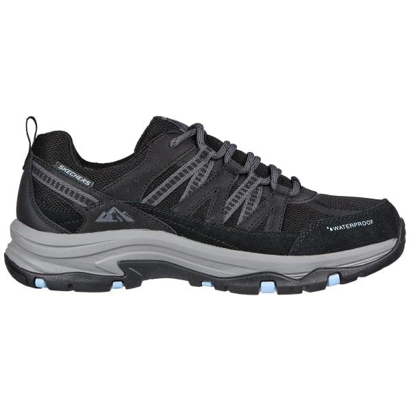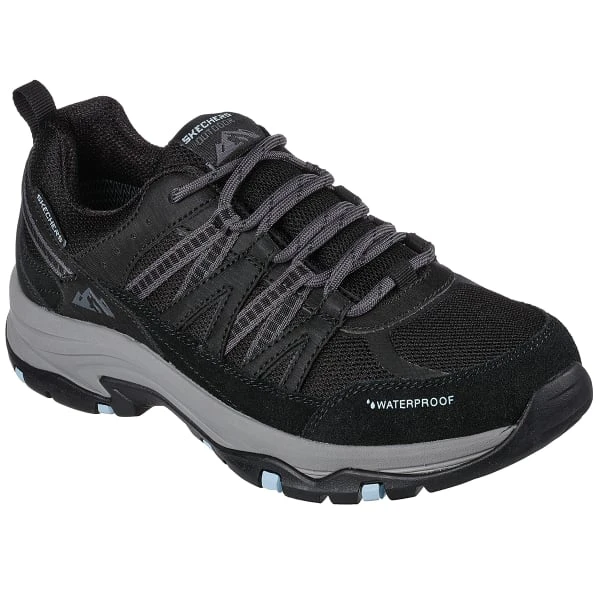 Explore the great outdoors in rugged comfort with Skechers Relaxed Fit: Trego – Lookout Point. This hiking trail lace-up design features a waterproof suede and mesh upper with a cushioned Skechers Air-Cooled Memory Foam insole and a slip-resistant outsole.